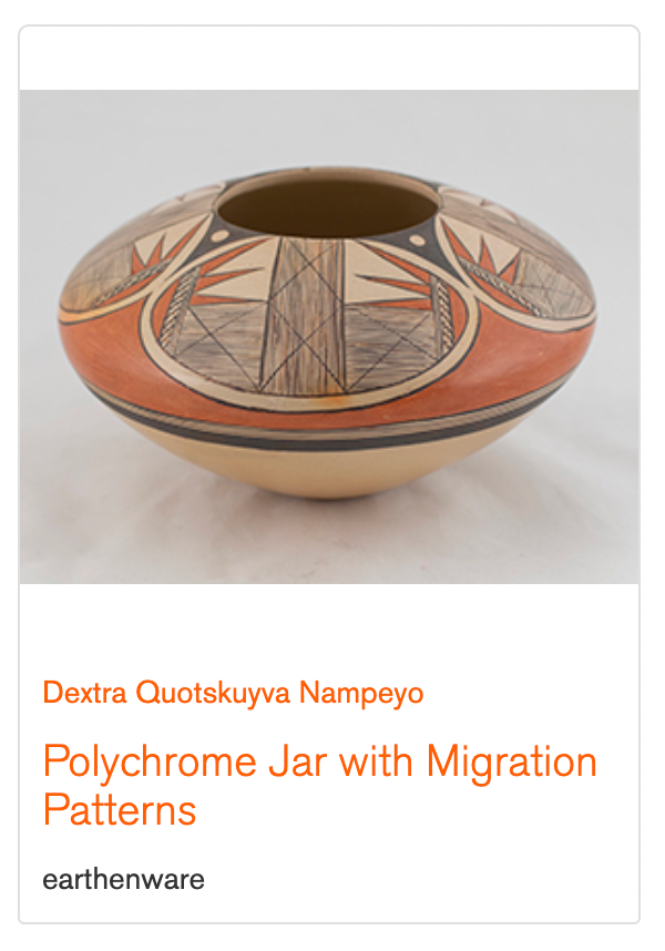 In my paper about my solo, I detail how I arrived at my choreographic inspiration based on the pot's own creation and design. The pot was created by the great-grand daughter of Nampeyo, a Pueblo artist who simultaneously innovated pot making by creating new design methods and preserved traditional artistic methods through teaching future generations. The design of the pot represents migration through lines and lines and lines, and represents movement with bird like imagery of feathers and beaks.